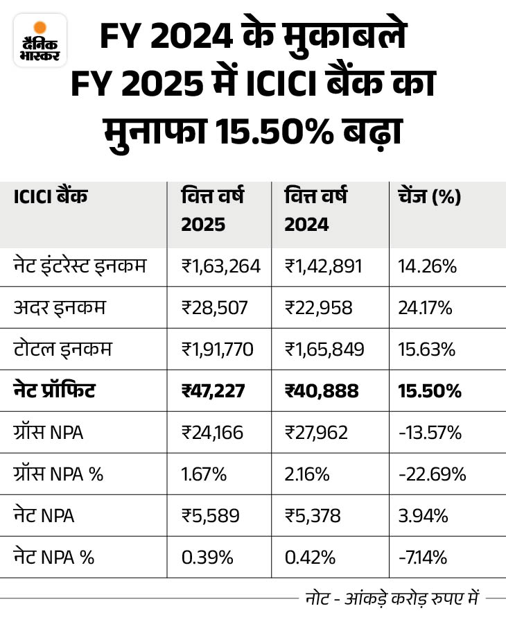 NIIT-IFBI में हिस्सेदारी बेचने की घोषणा ऐसे समय में हुई है, जब ICICI बैंक ने अपनी मार्च तिमाही में शानदार मुनाफा दर्ज किया है। जनवरी से मार्च 2025 तक ICICI बैंक ने कुल ₹49,691 करोड़ की कमाई की। इस कमाई में से कर्मचारियों की सैलरी, बिजली बिल, डिपॉजिट जैसे मद में खर्च करने के बाद बैंक के पास 12,630 करोड़ रुपए मुनाफे के रूप में बचा।