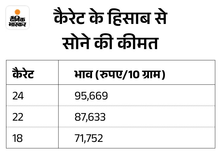 • दिल्ली: 10 ग्राम 22 कैरेट सोने की कीमत 90,200 रुपए और 10 ग्राम 24 कैरेट सोने की कीमत 98,240 रुपए है।