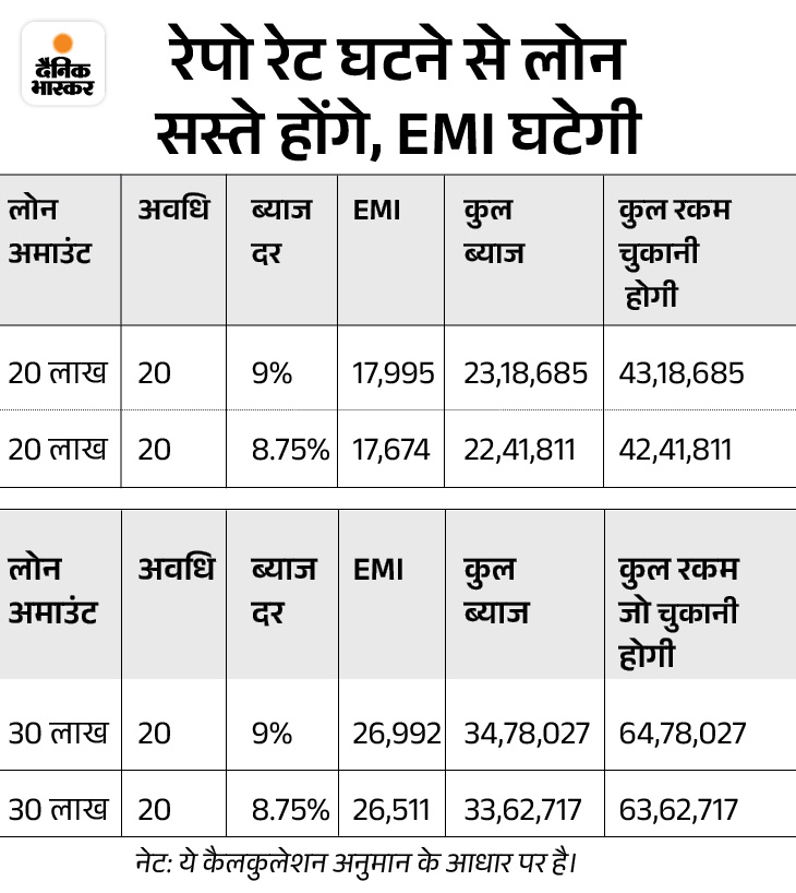 रेपो रेट घटने से इससे जुड़े होम और कार लोन सस्ते होंगे। इंडस्ट्री को सस्ता लोन मिलने लगेगा। इससे न सिर्फ शहरी खपत को बढ़ावा मिलेगा, बल्कि कारखानों में निवेश बढ़ने से रोजगार भी पैदा होगा। RBI ने फरवरी से रेपो रेट में कटौती शुरू की थी। तबसे दो बैठक में 0.50% की कटौती हो चुकी है। इससे रेपो रेट गिरकर 6% पर आ गई है।