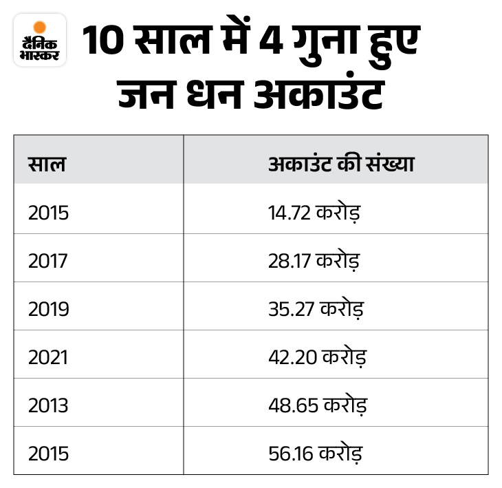 आज यानी 28 अगस्त को प्रधानमंत्री जन धन योजना (PMJDY) के 11 साल पूरे हो गए हैं। ये स्कीम 28 अगस्त 2014 को शुरू की गई थी। इस योजना के तहत अब तक 56.16 करोड़ से अधिक बैंक खाते खोले गए हैं। 56% जन धन खाते महिलाओं के हैं।