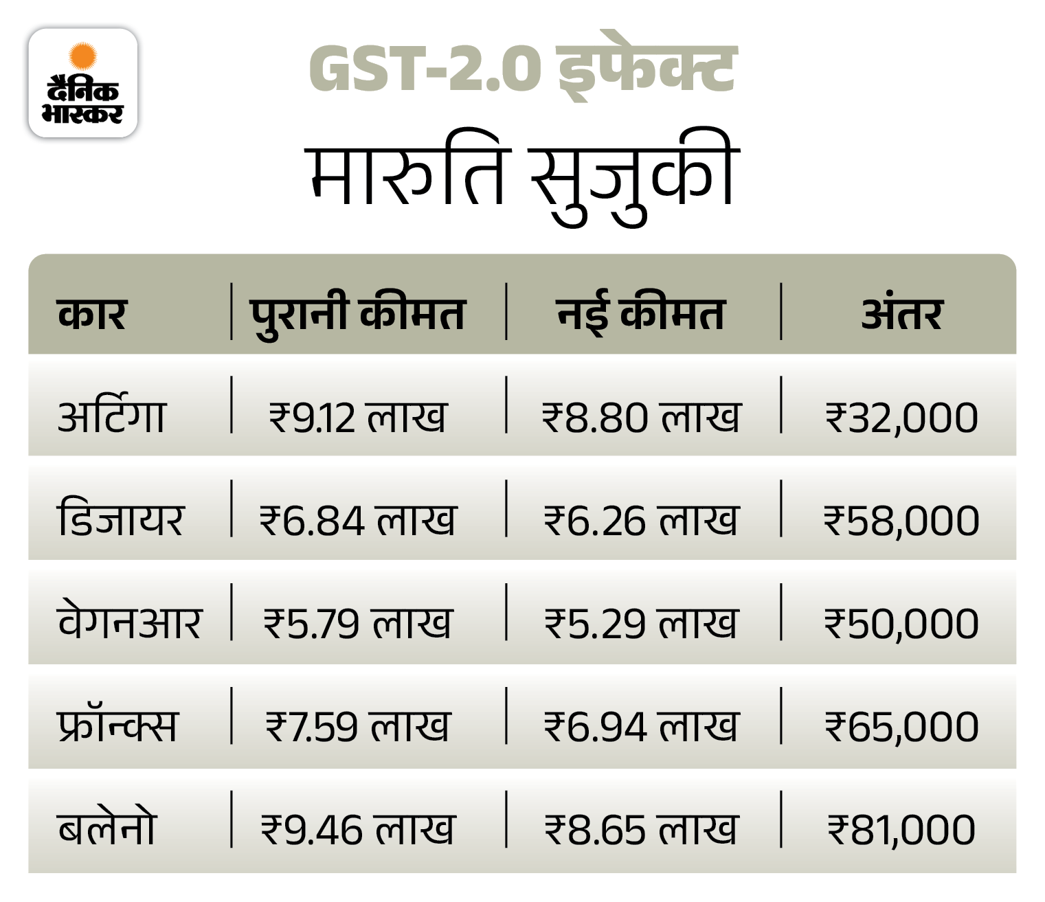 - ऑटो पार्ट्स और थ्री-व्हीलर पर भी टैक्स 28% से 18% हुआ, जिससे ये सस्ते होंगे।