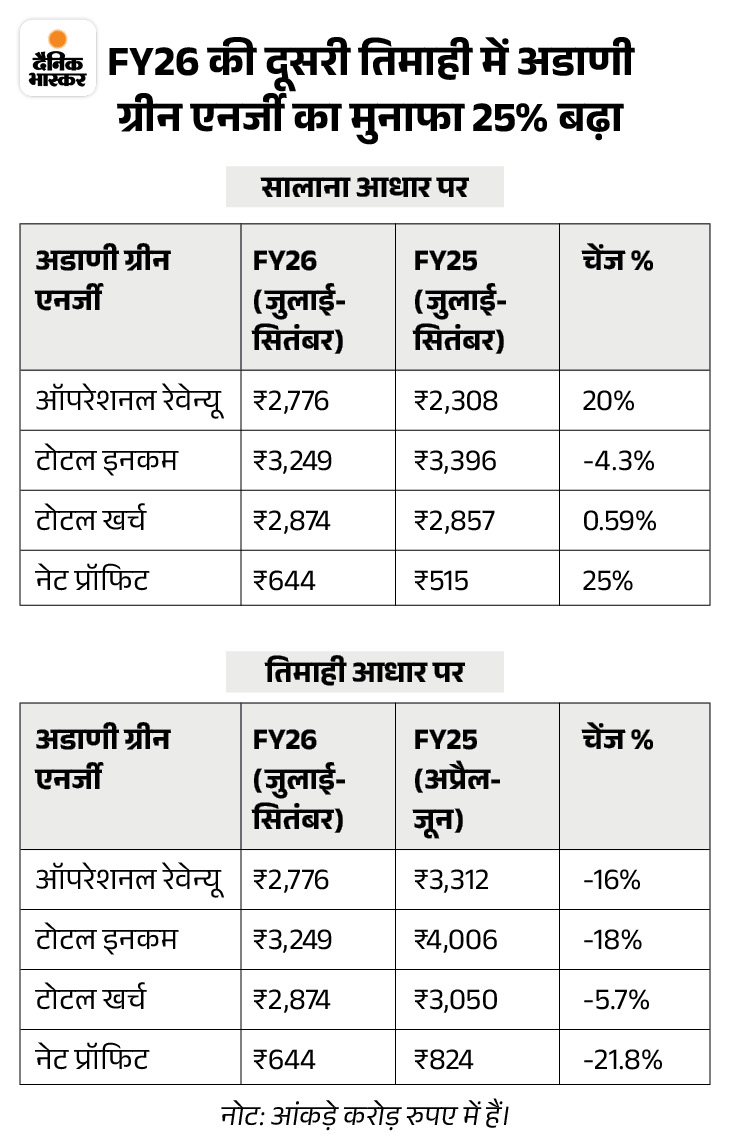 वित्त वर्ष 2025-26 की दूसरी तिमाही में अडाणी ग्रीन एनर्जी ने मार्केट के उम्मीदों से बेहतर परफॉर्म किया है। कंपनी का मुनाफा सालाना आधार पर 25% और रेवेन्यू 20% बढ़ा है। इसके बाद लोग लगातार कंपनी के बारे में सर्च कर रहे हैं। पिछले कुछ दिनों का ग्राफ देखा जाए तो साफ समझ आता है कि अडाणी ग्रीन का ग्राफ तेजी से बढ़ा है।