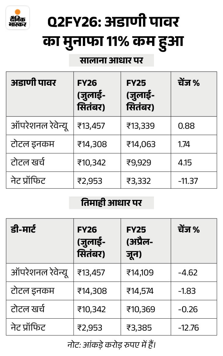 अडाणी ग्रुप की कंपनी अडाणी पावर लिमिटेड को वित्त वर्ष 2025-26 की दूसरी तिमाही में ₹2,953 करोड़ का मुनाफा (कॉन्सोलिडेटेड नेट प्रॉफिट) हुआ है। सालाना आधार पर यह -11.37% कम हुआ है। पिछले साल की समान तिमाही में कंपनी को ₹3,332 करोड़ का प्रॉफिट हुआ था।