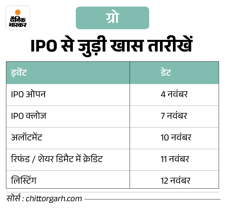 स्टॉक ब्रोकिंग प्लेटफॉर्म ग्रो की पेरेंट कंपनी बिलियनब्रेन्स गैराज वेंचर्स का IPO आज यानी 4 नवंबर से ओपन हो गया है। रिटेल निवेशक इसमें 7 नवंबर तक बोली लगा सकेंगे।