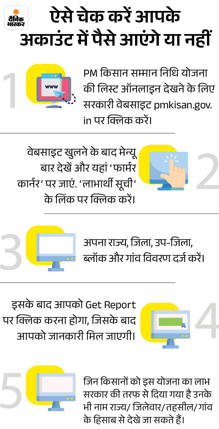 इस योजना के तहत किसानों के खाते में हर साल तीन किश्तों में 2-2 हजार रुपए ट्रांसफर किए जाते हैं। पहली किस्त अप्रैल-जुलाई के बीच, दूसरी किस्त अगस्त-नवंबर और तीसरी किस्त दिसंबर-मार्च के बीच जारी की जाती है।